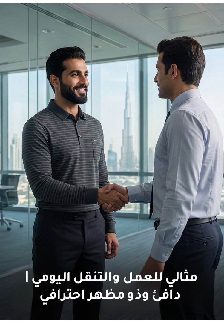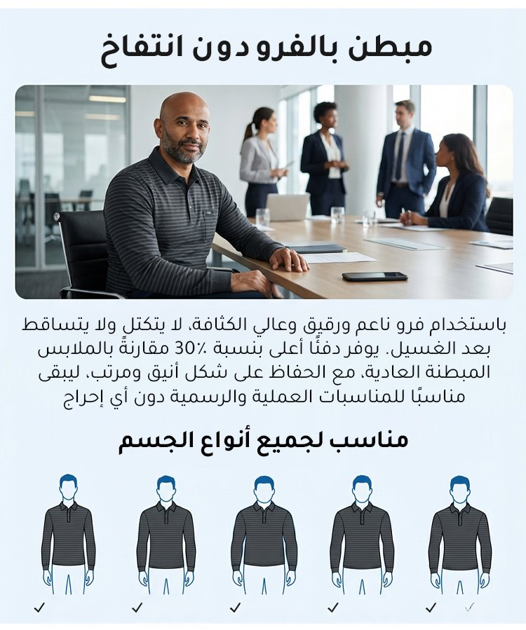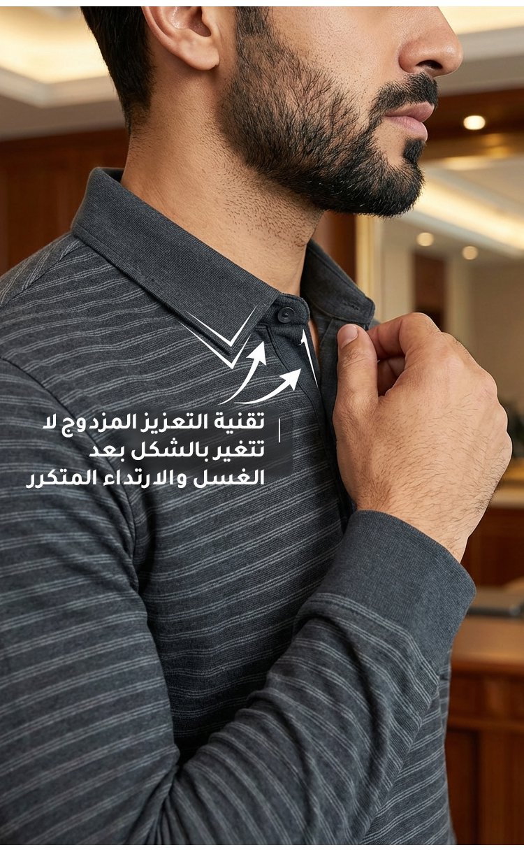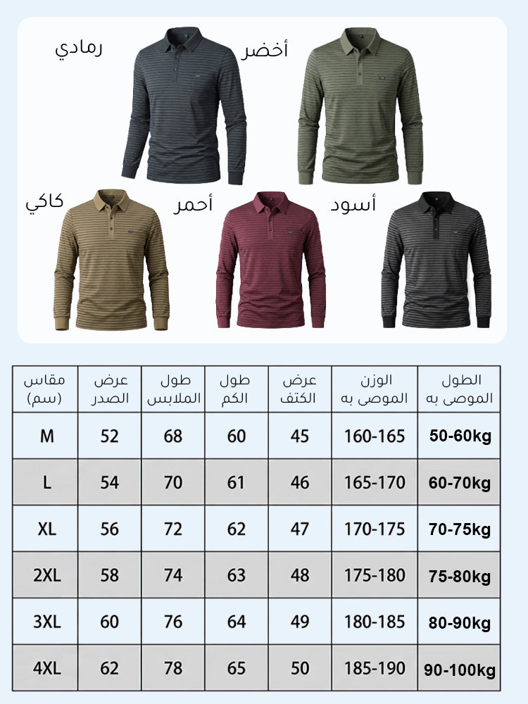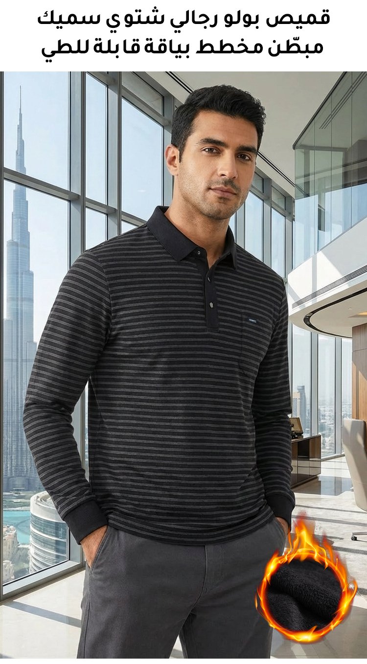 قميص بولو رجالي شتوي سميك مبطّن مخطط بياقة قابلة للطي